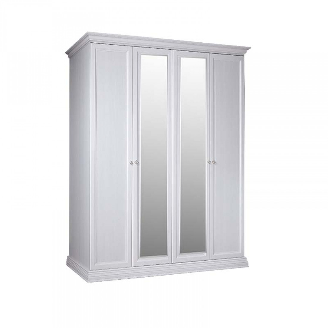 Четырехдверный шкаф с зеркалами для платья и белья АМШ1/4 изготовлен из ламинированной плиты Эггер (Австрия), а также плиты совместного итальянско-российского производства «Карелия ДСП», являющегося лучшим в России производителем мебельных плит, и покрыт итальянским лаком превосходного качества.
