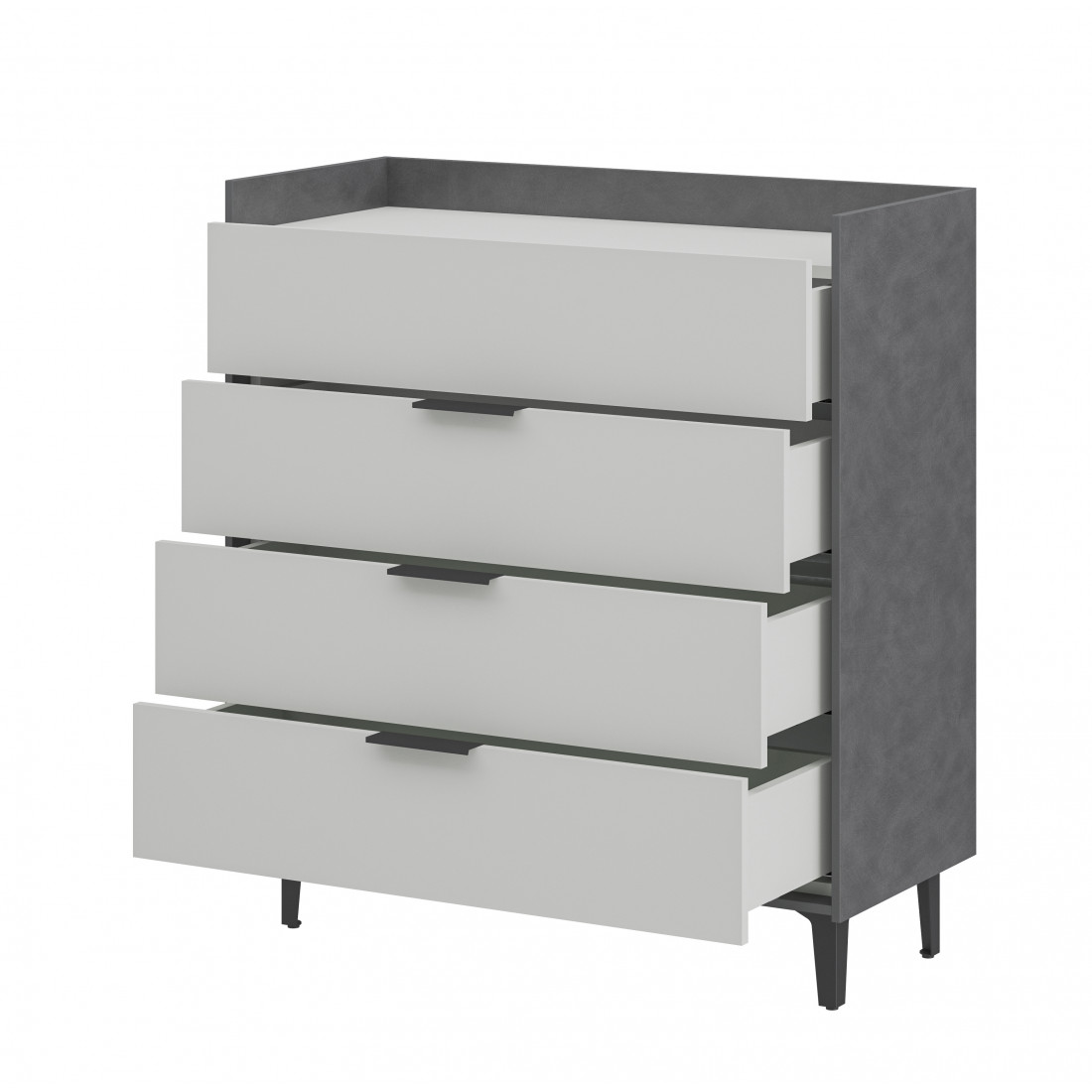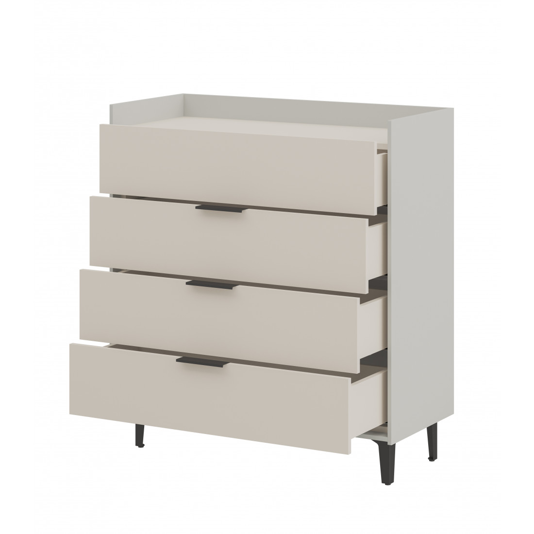 Элегантная комод Модена станет идеальным дополнением для вашей гостиной. Выберите из трех стильных вариантов цветов: Белый-Дуб Элисон, Лунный камень-жемчуг, Металл Бруклин-лунный жемчуг. Ножки из металла обеспечивают устойчивость.