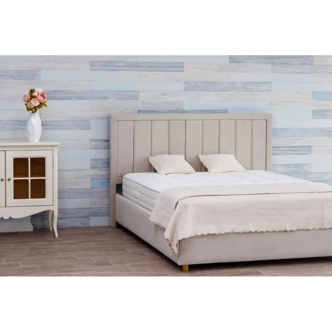 Кровать оснащена встроенным основанием для матраса — прямыми ламелями из березовой фанеры.