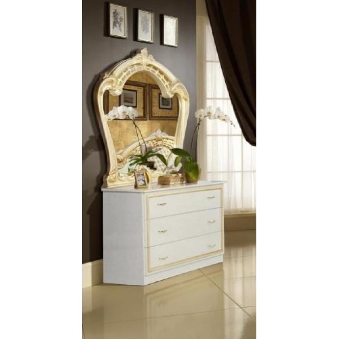 Спальня Ольга (беж) от Российской фабрики «ДИА мебель» выполнена в изящном бежевом цвете в сочетании с золотыми вставками и матовым покрытием. Фасад спальни украшен резными деревянными вставками, что сделает атмосферу богатой и роскошной. Такая спальня поможет вам почувствовать прелесть отдыха и окунуться в настоящий сон. Коллекция "Ольга" подойдет для настоящих ценителей классического стиля.