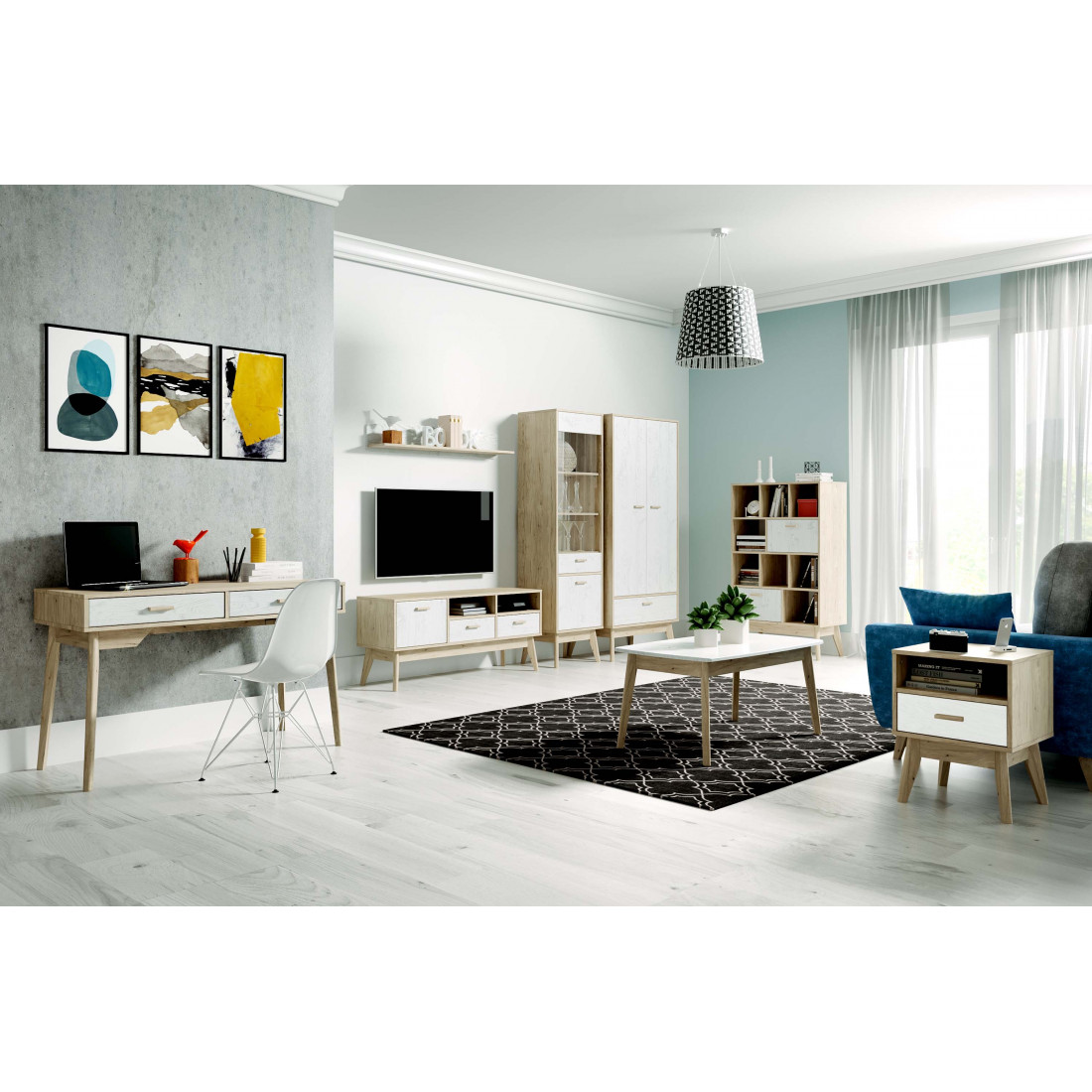Ультратрендовый стеллаж Калгари от Мебельград, выполненный в светлых тонах с элементами сдержанного стиля 60-х - высокие ножки, выраженная деревянная текстура натурального дуба, четкие формы. Вся мебель очень мобильная, компактная, вызывает чуство легкости и свободного пространства, при этом она функциональна.