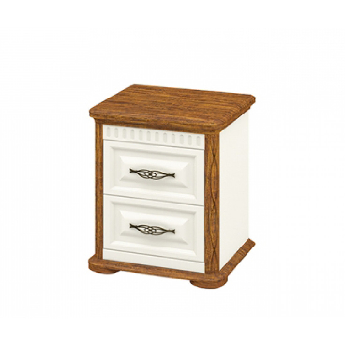 Тумба прикроватная МН-126-02 новой коллекции Марсель от Мебель-Неман выполнена в цвете "крем / дуб кантри". Оснащена двумя выкатными ящиками.